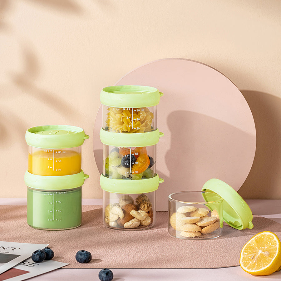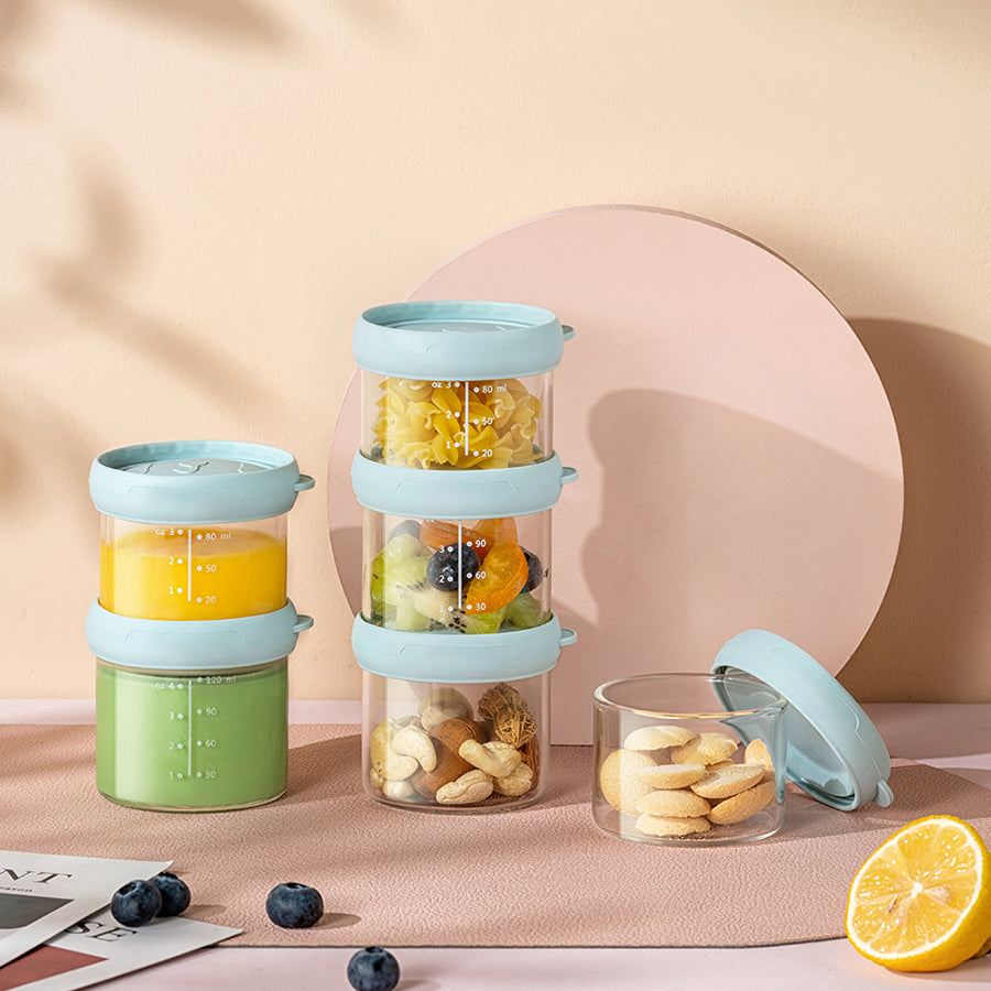 6 pcs/set Glass Baby Food Supplement Bowls – Portable Snack Dispensers, High-Temperature Resistant Milk Powder Containers with Lids, Baby Tableware for Infants and Toddlers