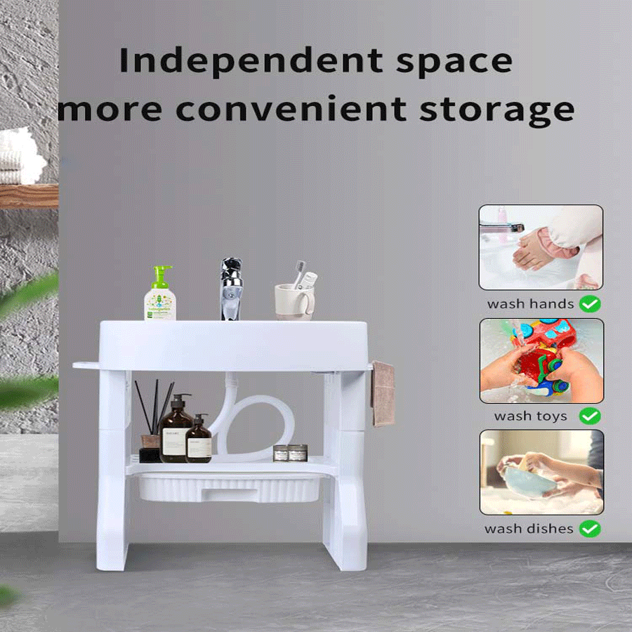 Adjustable Wash Basin Station for Toddlers and Kids - Early Training Plastic Washbasin with Towel Shelf and Simulation Faucet for Self-Care